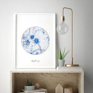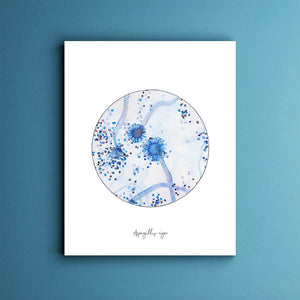 Aspergillus niger, the most common of the Aspergillus genus which features a velvety-powdery black colony. Microscopically it resembles that of a sunburst or lollipop and is absolutely mesmerizing to see. Spot a black mold growing on your fruit? It's most likely this species.