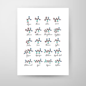 Hundreds of amino acids exist in nature, but these twenty are significant in that they are encoded by DNA and form the endless variety of proteins found in living organisms. Simply carboxylic acids with an amine group, they have the general formula of RCH(NH2)COOH.