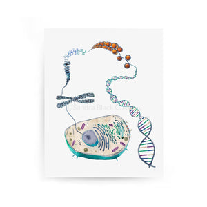 Over 3 billion base pairs of DNA are coiled, wrapped, and intricately organized within the nucleus, accessible for replication, transcription, and repair. It is mind blowing! Trace the purines and pyrimidines from the nucleus to chromosome, super-coil, scaffolding, histones, and finally to the double helix. Hang this breathtaking piece of art in your office or home, and let it serve as a constant reminder of the beauty and complexity of life.