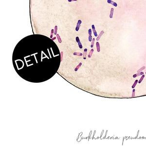 Burkholderia pseudomallei, an organism on the list of bioterrorism agents, appears as small gram negative rods which depict bipolar staining, known as a "safety pin" staining pattern. It is the causative agent of melioidosis.